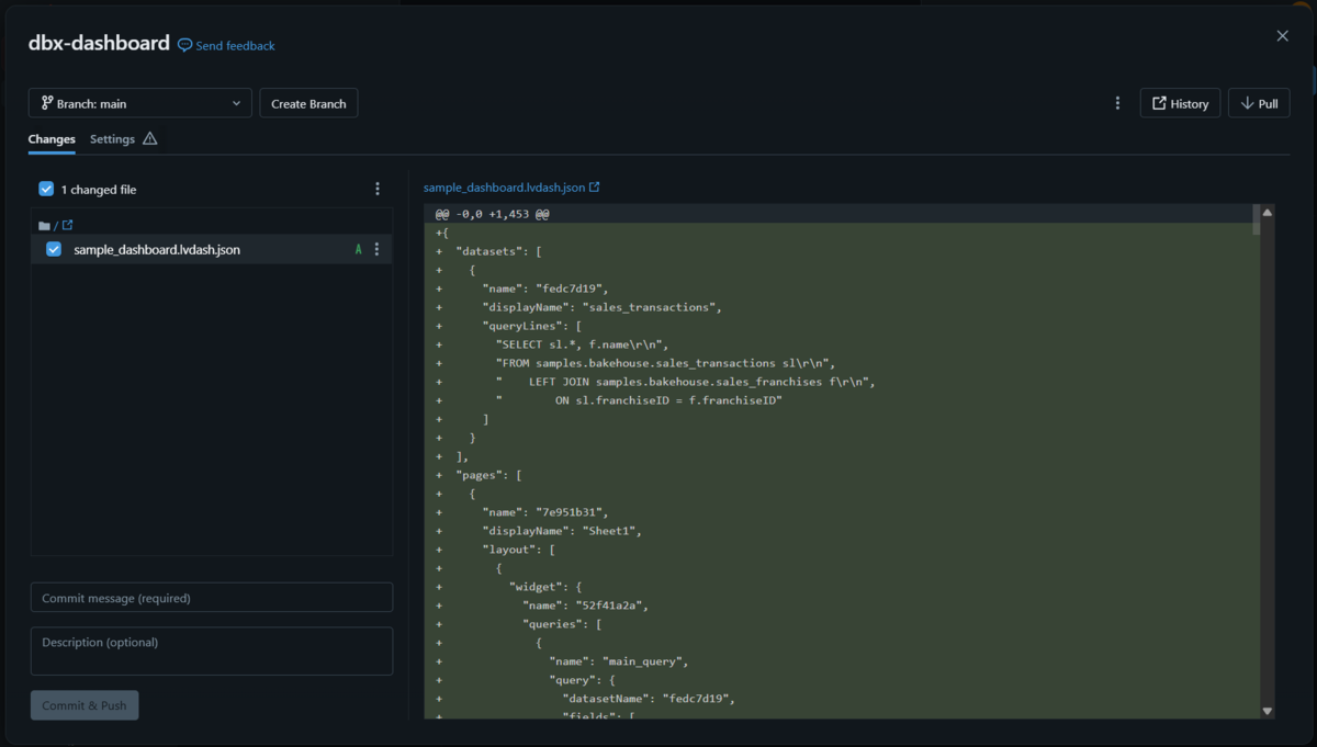 そこで注目したいのが、Databricks AI/BI ダッシュボードのソース管理機能です。